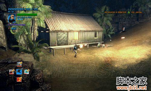 在本关我们没有了直升机的帮助,一切只能靠手啊。用最快的速度到达对岸,这样就可以躲避火线,到达对岸后就可以找到汽艇,使用汽艇。