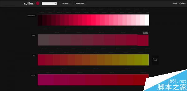 如果你想得到一个关于美丽色彩的调色板,你真应该试试这个。你甚至可以在其中输入你自己的颜色,你可以保留你喜欢的颜色,改变其中的一种或者几种等等。