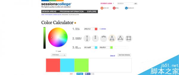 这个网站可以帮助你很方便的建立对比色,邻近色,等各种模式的色彩搭配。