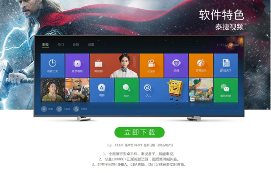 作为业内唯一无广告的直播点播聚合应用,泰捷视频看电视时几乎不被广告干扰,这点非常难能可贵,毕竟市面上九成的视频应用,基本都有广告。而且,还很长。。。试想一下,想看一部电影,打开之后发现180秒的广告,砸电视的心都有了。