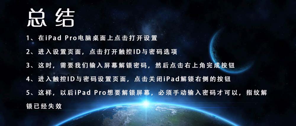 5、这样,以后iPad Pro想要解锁屏幕,必须手动输入密码才可以,指纹解锁已经失效