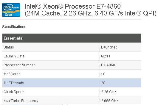 以查询E7-4860 CPU为例。访问intel官方信息网站http://ark.intel.com/zh-cn